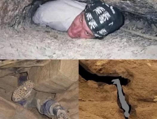 The individual in the photograph appears to be navigating an extremely narrow passage, likely part of a cave system or a natural rock formation. These environments are known for their unpredictability. Passages can narrow suddenly, rocks can shift, and what seems like a manageable space can quickly become a trap. In this case, the person’s body is tightly wedged between rock surfaces, leaving little to no room for movement. Their head is turned to the side, pressed against the ground, with only a small opening for breathing and visibility.