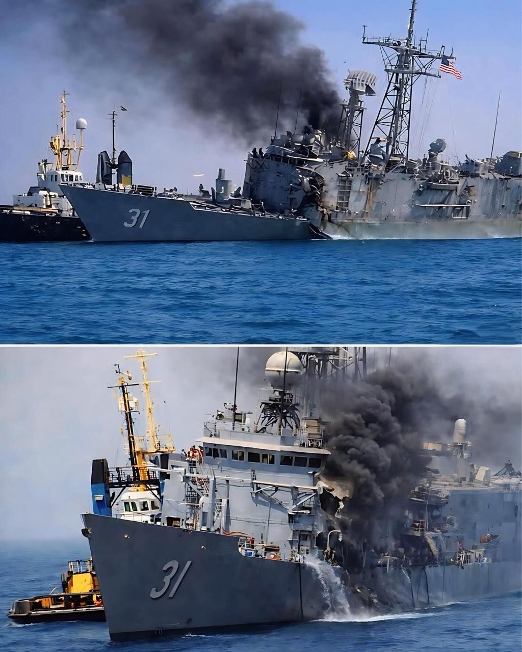 During the exercise, the Harpoon missile struck the hull of USS Rodney M. Davis with devastating precision. Designed to skim just above the sea surface, the missile penetrated the ship’s defenses and detonated, causing severe structural damage. Observers reported a large explosion followed by thick smoke rising from the vessel as fires spread internally. The impact demonstrated the destructive power of modern anti-ship missiles against legacy naval platforms.